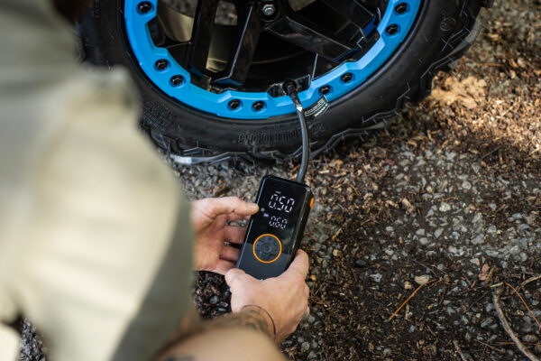 Kompakt og oppladbar kompressor med digitalt trykkdisplay, LED-lys og innebygd powerbank på 2000 mAh. Perfekt for rask pumping av bildekk, MC, sykkel, ATV eller baller. Brukes trådløst eller via 12V-uttak, med automatisk stopp ved valgt trykk opptil 150 PSI.